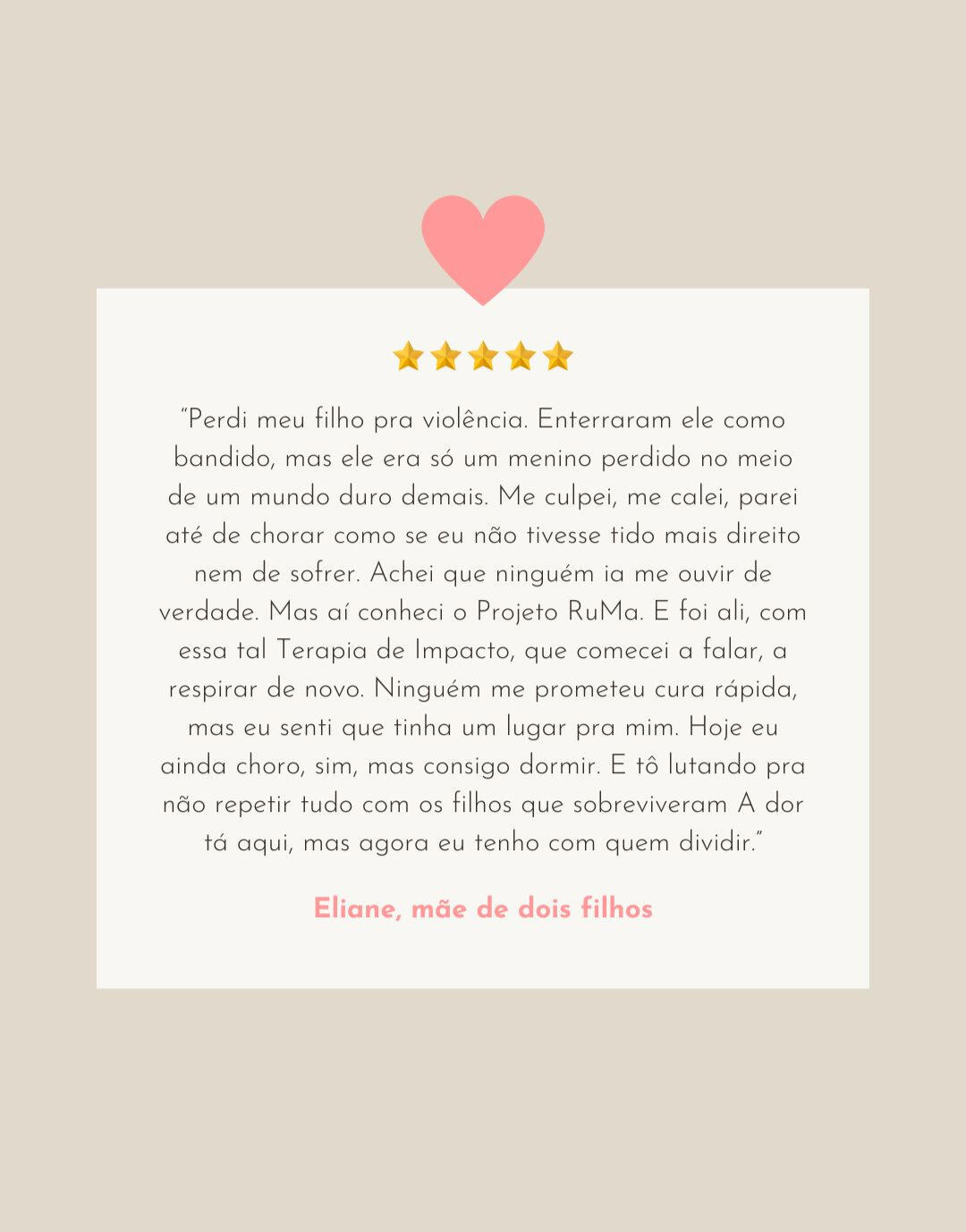 Foi inspirado por duas mães que, em momentos distintos, perderam seus filhos para a violência. Histórias que tocaram profundamente este trabalho e que seguem sendo lembradas em cada escuta oferecida aqui.Mas o RuMa não é apenas sobre o luto.