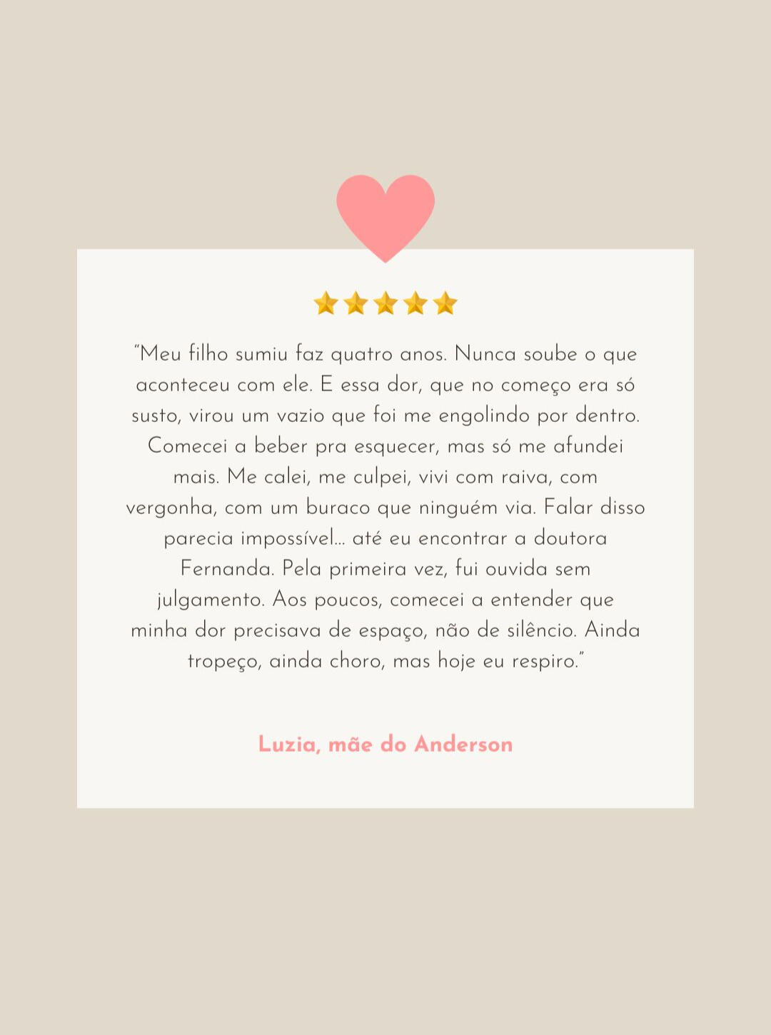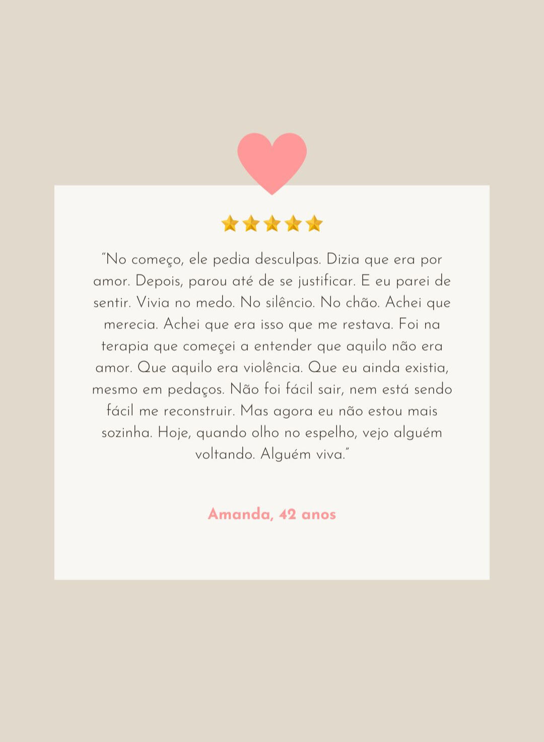 Um lugar onde a dor encontra amparo e começa, lentamente, a se reorganizar.Se você sente que está vivendo por dentro ou que ninguém enxerga por fora… esse espaço também é seu.